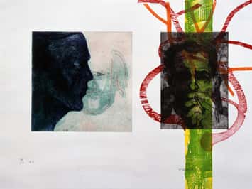 Tony Mosna; The Artist as Witch Doctor, 1990-1991, colour etching and woodblock on paper, 4 of a varied edition of 9; 57.0 x 76.0 cm, Collection of the AGW